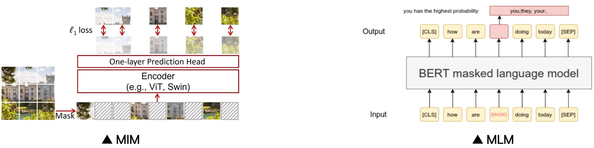 - 이미지 단독(batch of images) → Masked Image Modeling (MIM)