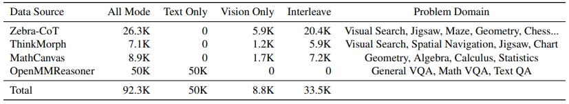 Step 1) 후보수집 + 쉬운 데이터 제거: ThinkMorph, Zebra-CoT, MathCanvas-Instruct 이용(중간 사고이미지가 포함된 데이터셋들)